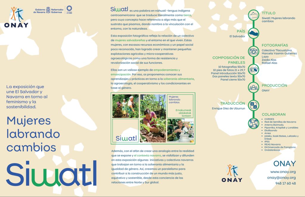 Esta exposición tiene su origen en la experiencia del programa de cooperación desarrollado por CORDES (El Salvador) y ONAY denominado “Contribuir al ODS 5 mediante el empoderamiento económico y la seguridad alimentaria en los municipios de Chiltiupán, La Libertad, Comasagua y Zaragoza, departamento La Libertad.”, financiado por el Gobierno de Navarra.