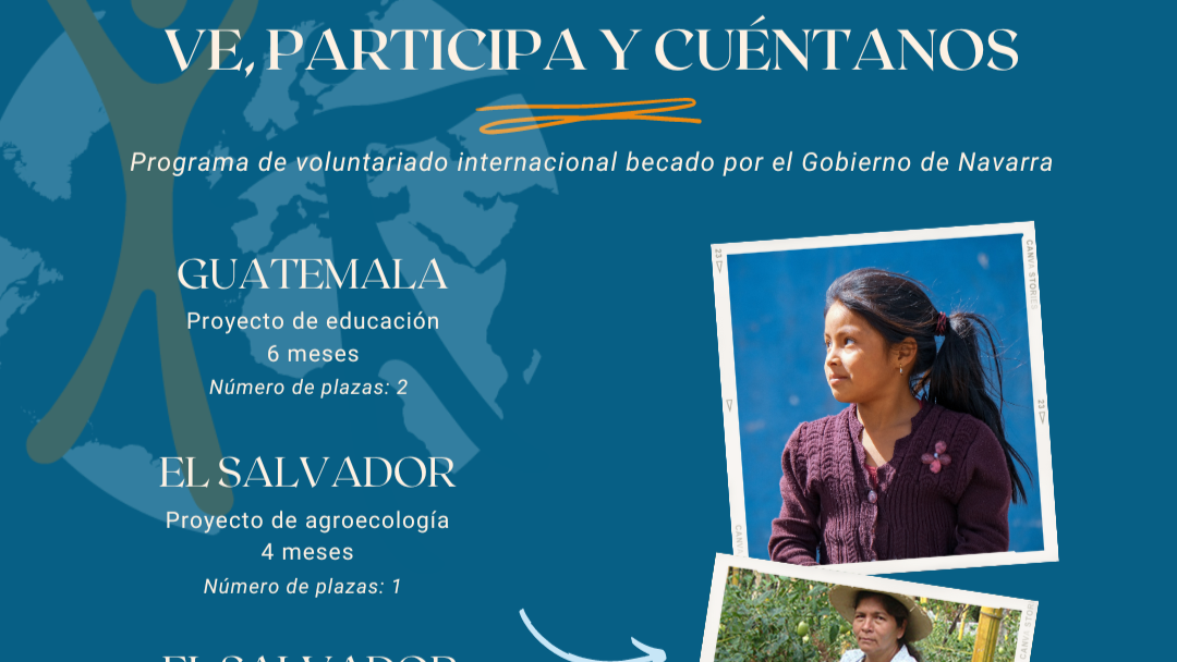 Este año, desde ONAY tenemos 4 plazas en el programa; dos plazas para Guatemala, en las que se requiere un perfil de educación y dos plazas para El Salvador, una para un perfil de agronomía y otra para un perfil de comunicación social, género y DDHH.
